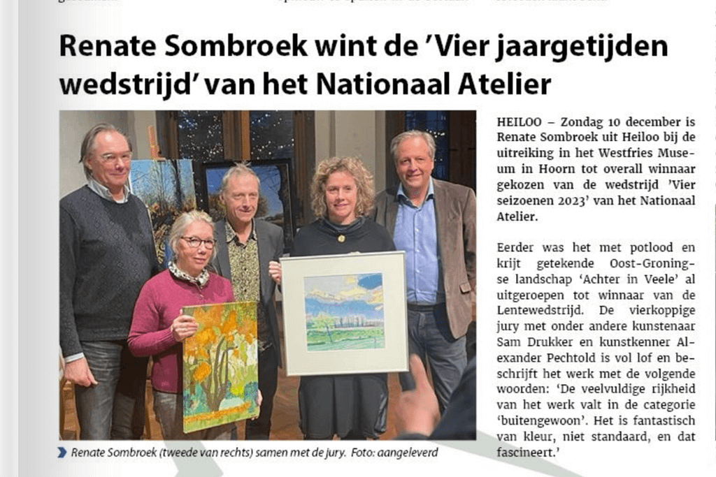 In 2023 nodigde het Nationaal Atelier haar leden uit om de pracht van ieder seizoen vast te leggen in de “Vier Jaargetijden” wedstrijden. Elke wedstrijd stond in het teken van een seizoen. Op 10 december werd in het West-Fries museum in Hoorn de prijs uitgereikt voor overall winnaar van het jaar 2023.
